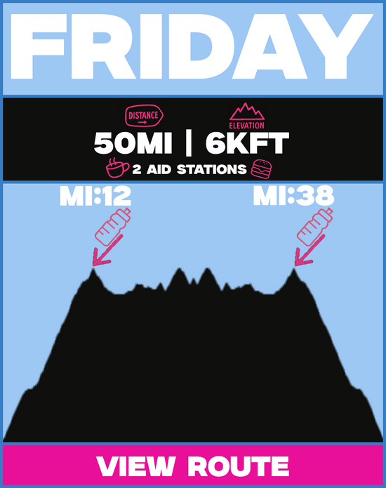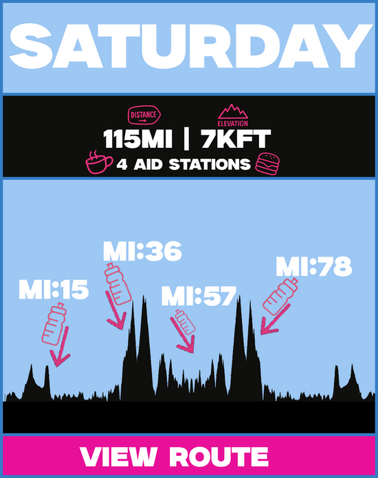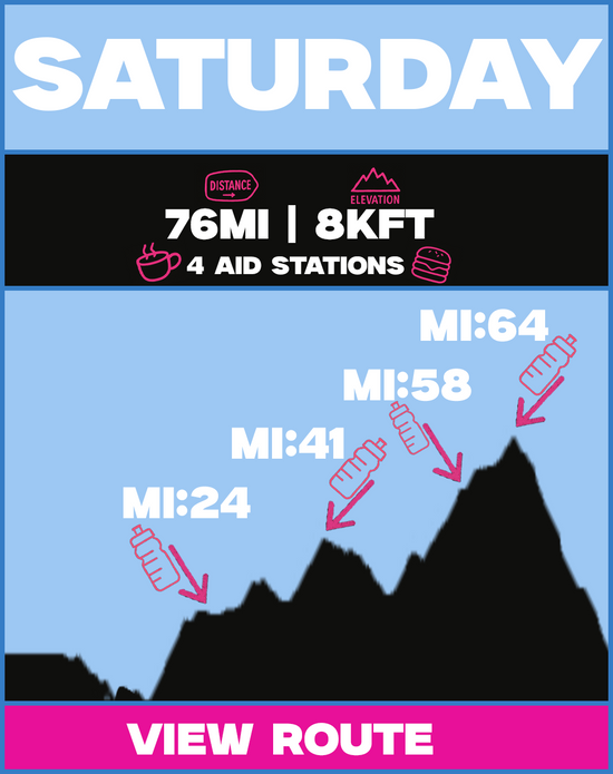 VIEW ROUTEWell packed dirt forest service roads, one GIANT dirt climb, 3 fully stocked aid stations, epic road descent, BONUS ride to a hidden lake available.