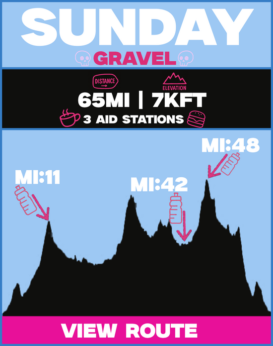 VIEW ROUTEA challenging gravel ride inland through rolling hills, 3 major dirt climbs with some amazing descents, and epic views. Bailout points are NOT SUPPORTED but are available. Gravel Bike with good gears is required.